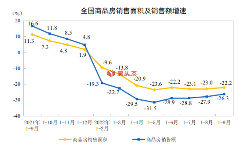 10月24日,国家统计局发布2022年1-9月全国房地产开发投资和销售情况数据。