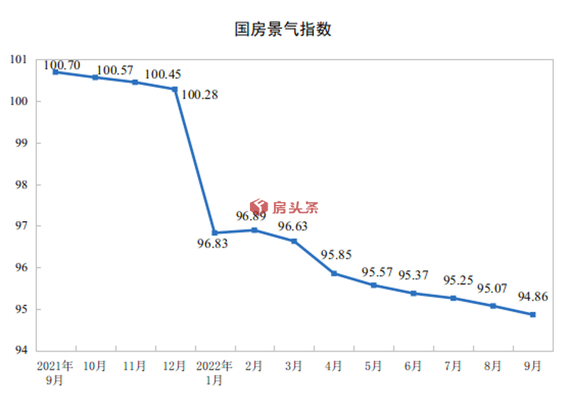 9月份,房地产开发景气指数(简称“国房景气指数”)为94.86。